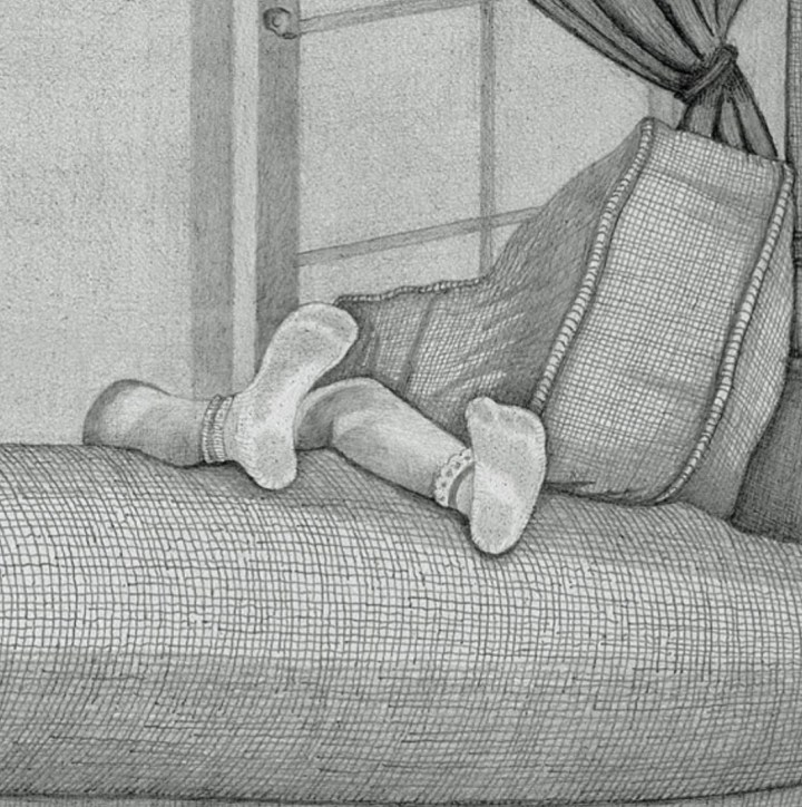 At times I watched cartoons, without sound, to be quiet. Sometimes I lay upside-down in my huge chair and extended my legs upward and pretended to walk on the ceiling, defying gravity. Other times I looked at pictures in the encyclopedia. Still other times, I napped, tuckered out from a hard morning at school.