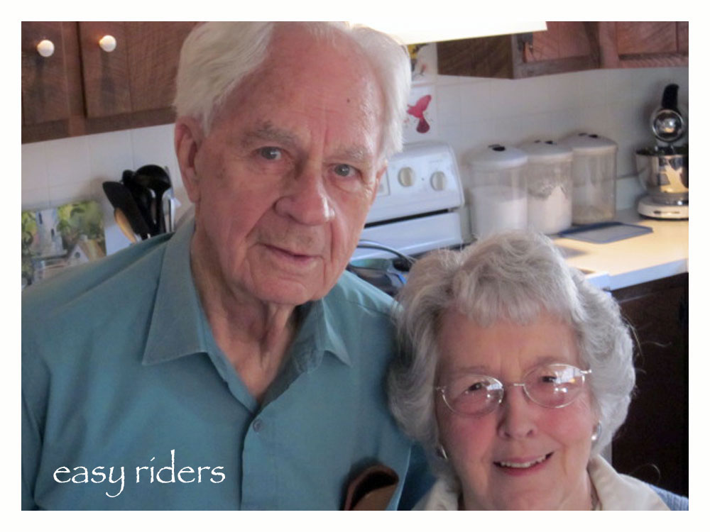 This amazing little transport vehicle is Rose and Harold’s most recent acquisition. Though Mom is almost 89 and Harold’s approaching 92, they continue to live life in the fast lane. Harold researched the latest improvements and features. Of course, motorized scooters are fairly easy to come by, but Harold wanted one that he could disassemble and efficiently drop into his mighty new red Chrysler trunk. With “wheels” in tow, there would be no stopping them as they went about their daily schedule of road trips and socializing. The pieces of the scooter were all put together and the battery fully charged . . . so why not rev this thing up and peel out over the Hills o’ Brown roads?