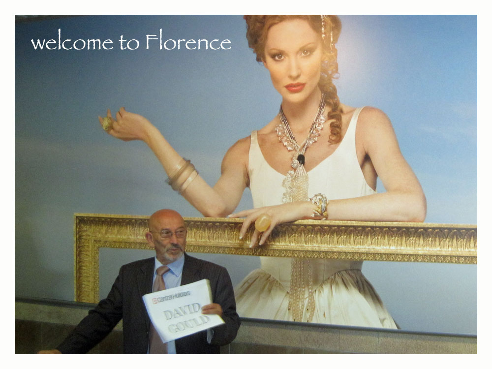 Lately we’ve had more than one occasion to be standing at the arrivals door of the Amerigo Vespucci aeroporto Firenze, Florence Airport (by the way, did you know that in 1507 America was named after this dude named Amerigo?) Anyway, back to the story . . . and while standing there waiting for familiar faces to pop through the door, we’ve had ample time to ponder that interesting woman on the wall. Why does she look that way, and what is she doing with that picture frame?