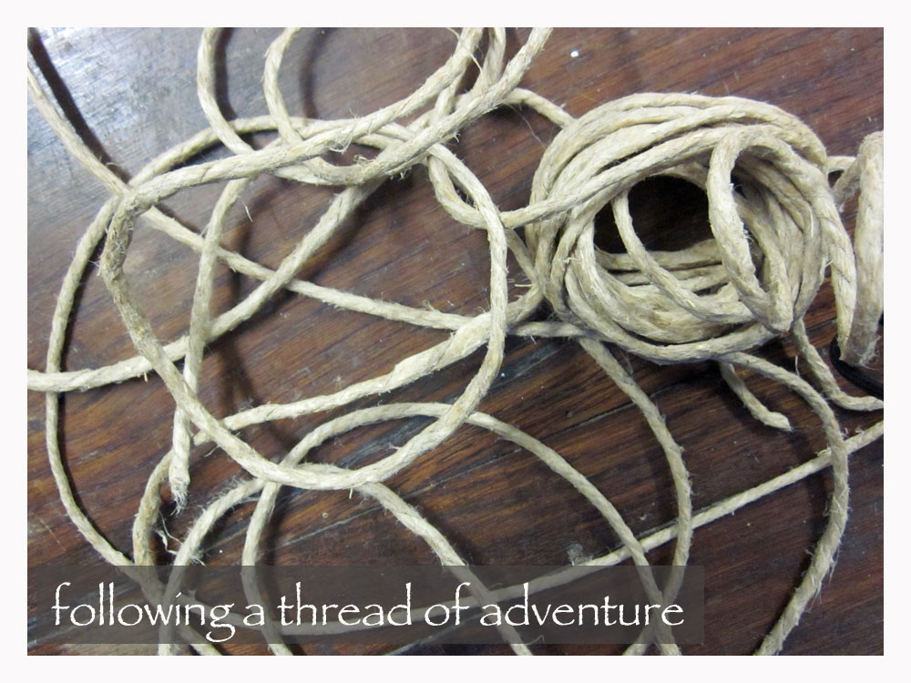 We like to play a little game called Follow That Thread. It’s really simple and great fun because we never quite know where things are going. It’s also good exercise for slowing down, paying attention and trusting the process. It leads to the most curious things, but to make it work, judgment has to be suspended—accepting whatever shows-up. It feels like wandering through back streets and alleys to discover new places and things.