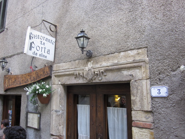 By the way, if you ever go to Capalbio you must have lunch at Ristorante la Porta da Alma. Lunch (pranzo) was roasted right next to the table in an open fireplace—fantastico!