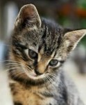 A strange thing happened while taking our yard clippings to the local collection site for recycling. Upon arrival, we heard a loud chorus of birds somewhere on the ground around the bins, but they didn’t fly away when we approached. It was more like mournful yowling. Between the sack of grass clippings and under nearby rubble, we squinted to see the face of a small kitten. Then we spied another one. Wait! There was a third. A fourth. We were up to five and still heard sounds coming from the nearby woods. A lone kitten stood in the tall grass, crying. We heard another one, but couldn’t see it. Then, crouching down to peer under some leaves and branches we spotted the last kitten. There were seven frightened crying kittens. Four were softly striped in gray and white. Two others had markings that were more vivid. And number 7 was a two-tone. No mother cat was to be found. They had been abandoned—left to die.
