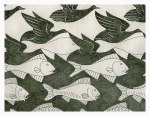 In 1879, the printer/illustrator Benjamin Henry Day invented “Ben Day dots,” those ubiquitous dots that illustrate comics. This invention opened up possibilities for creative expression. Day concluded that images don’t need to be rendered in full color, but rather, could be made from thousands of tiny equal-size dots with varied spacing, color or even overlapping to create a desired effect or illusion. Creating optical illusions is a visual magic act, based on knowledge of how the eye and brain work together to fill in the blanks. The human eye picks up patterns and the brain finishes the rest.