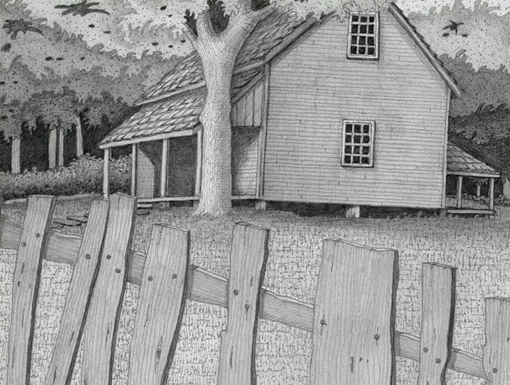 This drawing is about finding inner peace. Of course, the pathway is different for all of us, but we wanted to create imagery, lyrics and music that would evoke memories of a special place where we always feel safe, loved and deeply satisfied. That physical metaphor becomes a map of our interior where only we can go alone. The “Cottage.” Our Souls have the keys.