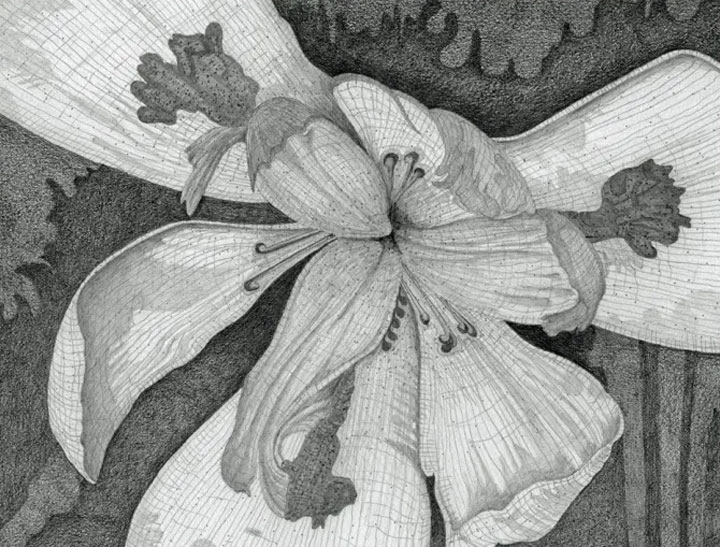 This drawing is about the mystery of nature. It’s possible to go into a trance state using nature as the vehicle. All boundaries fall away and I am transported to a place where: The horizon becomes a slow burning fuse; clouds morph into angel hair plucked by nimble unseen fingers; dusk both obscures and reveals; historic figures become real; and the hills and valley sigh, exhaling a moist heavy breath—at winter’ end. Pure magic.