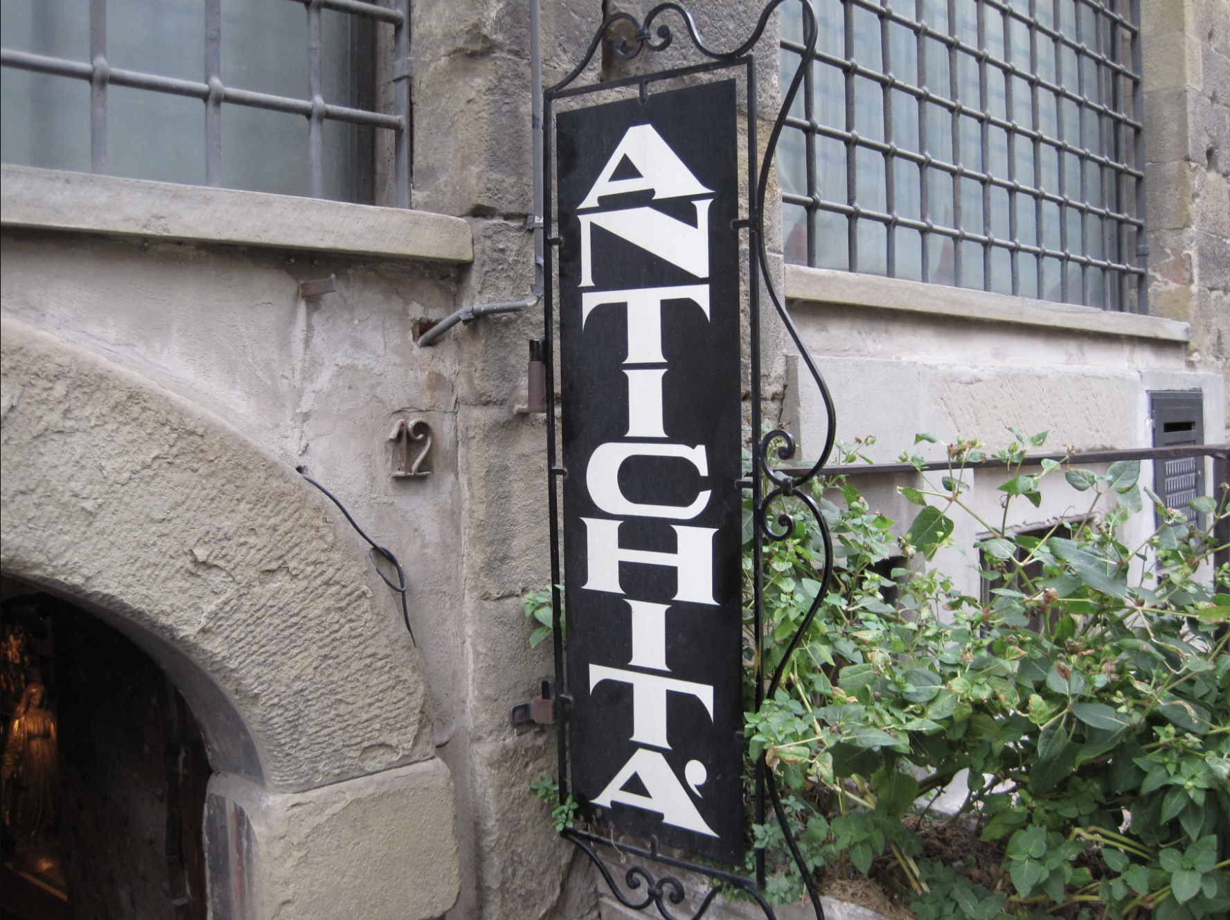 We browsed a while and inquired about an old fireplace back plate. Troppo caro per noi, too expensive for us. We wandered a while more until mid-day when our thoughts turned to food. The last time we’d come to Arezzo we found this sweet little restaurant in a so-called buco, hole. It was on a side street and down a stone stairway below ground level, hence the buco status. But inside, what fun! The place has arches and vaults, all hand painted and decorated. Hmmm.