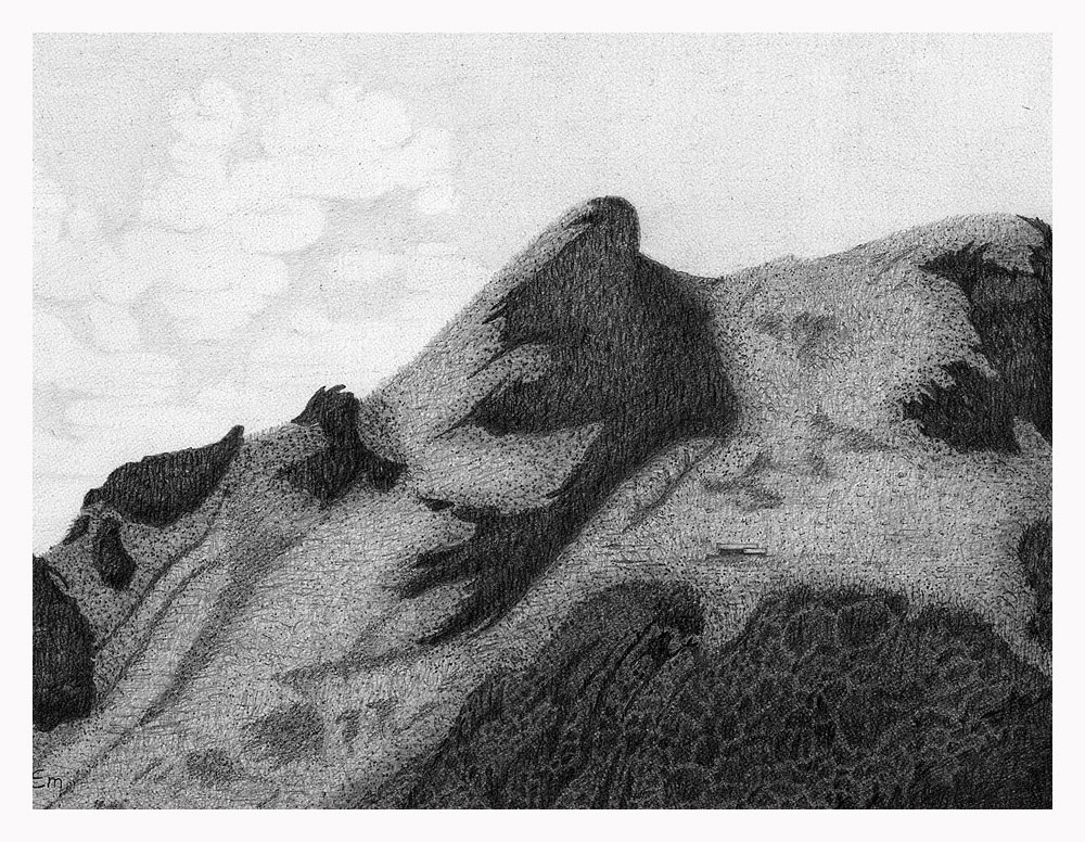 We made the hour-long drive to a small town called San Antonio d’Alpe. At dusk, we walked the trail from the end of town, to a clearing where we could see the silhouette on the mountain’s crest. There he lay, still peacefully, resting—The “sleeping man.”