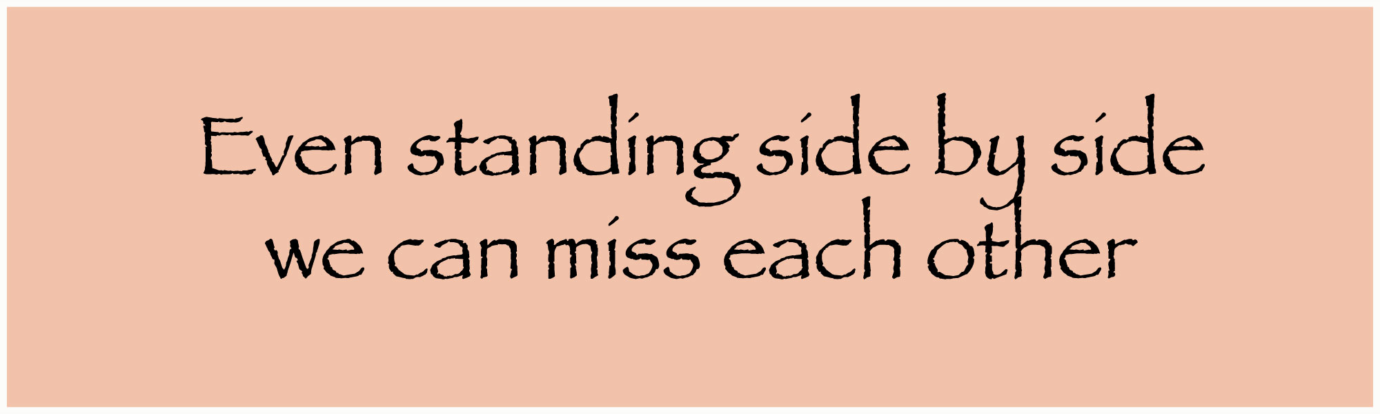 This is the story of finding ourselves waiting for the day when there will be time, and renewed interest in what the other one does. It seems that interests so quickly diverge and we find ourselves drifting further and further apart—living parallel, separate lives.