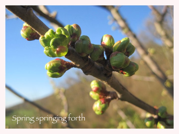 Immediately in front of us is the most incredible display of hope and faith in each new day. The Tuscan spring of this year arrives in all its splendor. Millions. No, billions of tiny tentative forms peek from beneath hardened bark, choosing to go one more round, to continue Life’s cycle, to shake off the blanket of winter. Shades of gray transform into delicate green, pink and yellow buds, right before our eyes. Blossoms. Flowers. And we anticipate the unfurling of leaves for shade in the months to come.