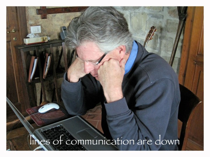 Math is actually the issue here. Take any regular problem and multiply it by the following factors: I am temporarily alone and must resolve any computer/technology issue in Italian tech-talk, the people who can help aren’t anywhere close by, telephone conversations are not easy—which means that instead of having a problem, suddenly I have a convoluted, compounded major problem of huge Italian proportions!